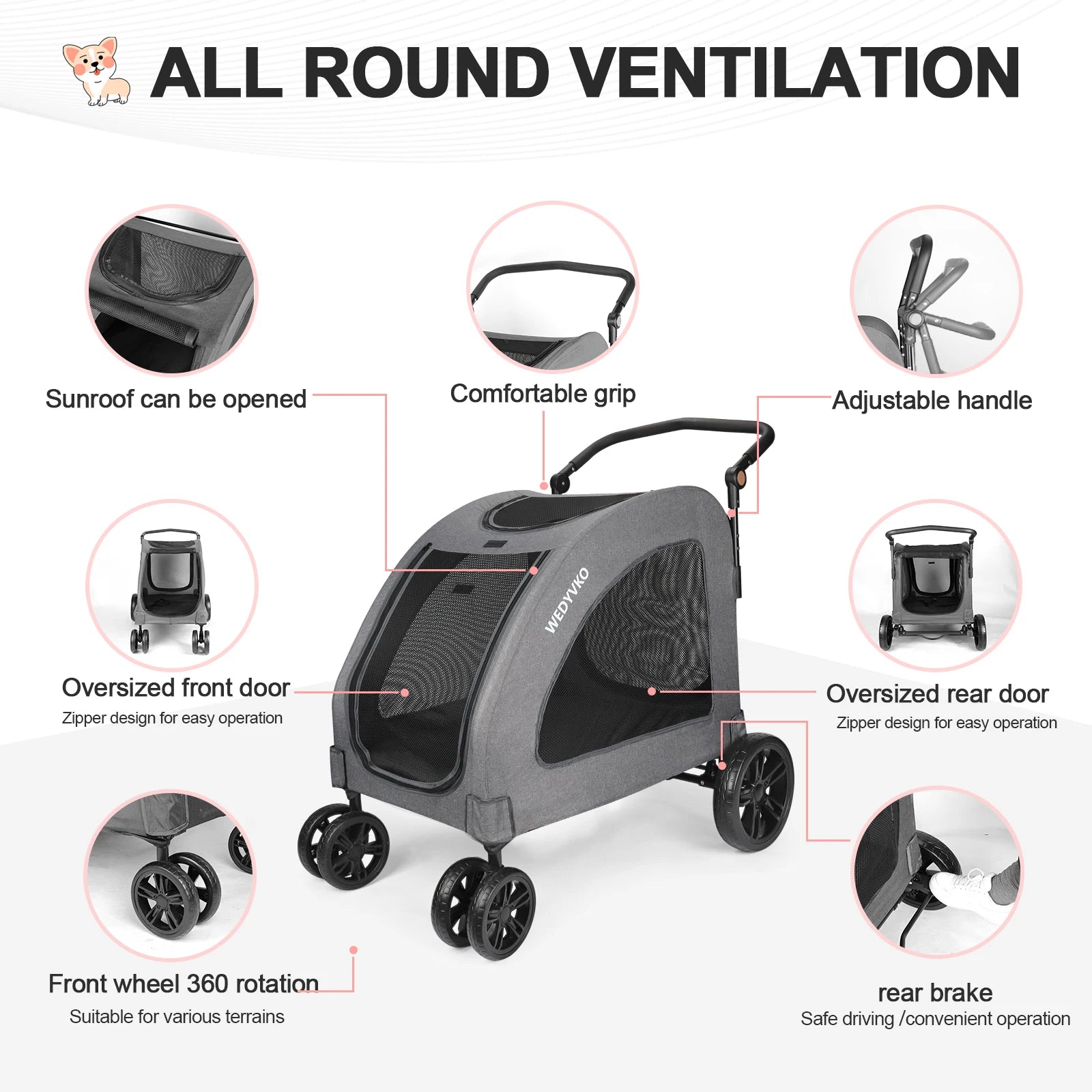 Pet Stroller,High Quality 3 Big Wheels Pet Dog Cat Trolley Strollers Outdoor Travel Carrier Cat Dog Pet Cart Portable